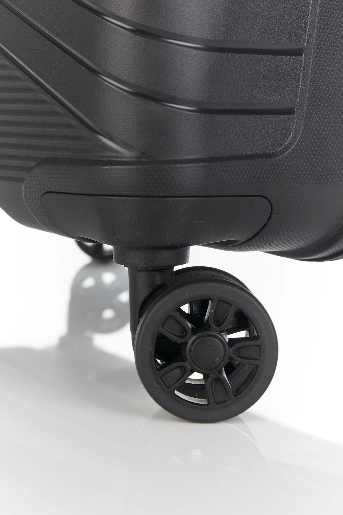 Constructed from durable polypropylene which can flex for better impact resistance, and with wrap-around grooves for absorbing shock. This suitcase is also outfitted with 360 degree dual-spinner wheels for smooth gliding and a water-repellent zip so you can travel anywhere without worry.